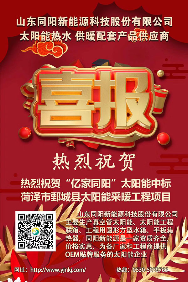 “億家同陽(yáng)”太陽(yáng)能中標(biāo)菏澤市鄄城縣太陽(yáng)能采暖工程項(xiàng)目。