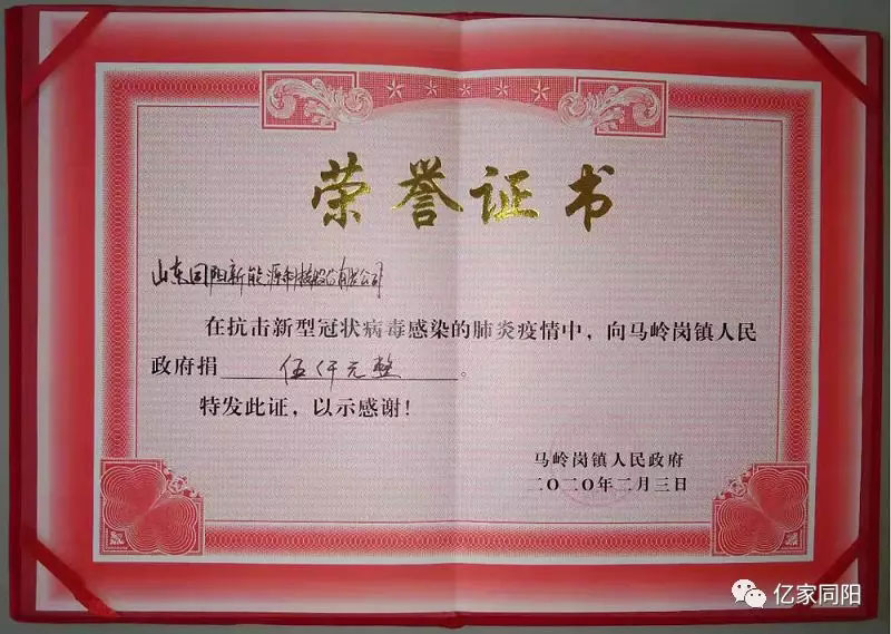 疫情無(wú)情人有情,危難時(shí)刻顯擔(dān)當(dāng)。面對(duì)嚴(yán)峻復(fù)雜的疫情防控形勢(shì),當(dāng)無(wú)數(shù)“逆行者”們義無(wú)反顧地向抗戰(zhàn)一線進(jìn)發(fā)之時(shí),我們億家同陽(yáng)人也在號(hào)召下通過(guò)最樸實(shí)直接的行動(dòng),默默地為戰(zhàn)勝疫情貢獻(xiàn)自己的一份力量。元宵節(jié)前夕,山東同陽(yáng)新能源科技股份有限公司總經(jīng)理陳永峰為支援此次疫情向政府捐款5000元。